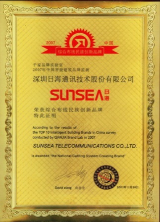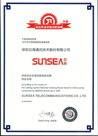 2007年11月29日~30日,BBIN宝盈智能综合布线受邀前往上海光大会展中心酒店,参加由千家网筹办的“2007年第八届中国国际建筑智能化峰会暨颁奖典礼”,取得了“布线民族创新品牌”特别奖项。